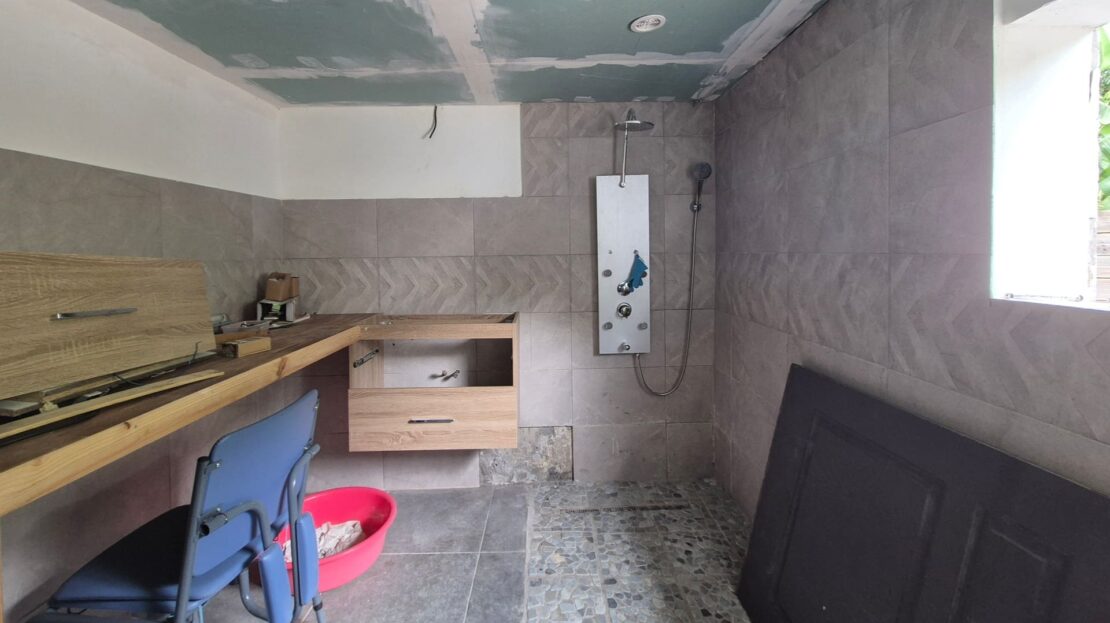 À l’extérieur, l’aménagement de la terrasse attenante à la cuisine reste à finaliser. La piscine déjà installée constitue un avantage non négligeable pour un futur projet locatif ou familial. Renforçant l’attractivité du bien sur le marché immobilier du Tampon où les maisons avec piscine en centre-ville restent rares.
